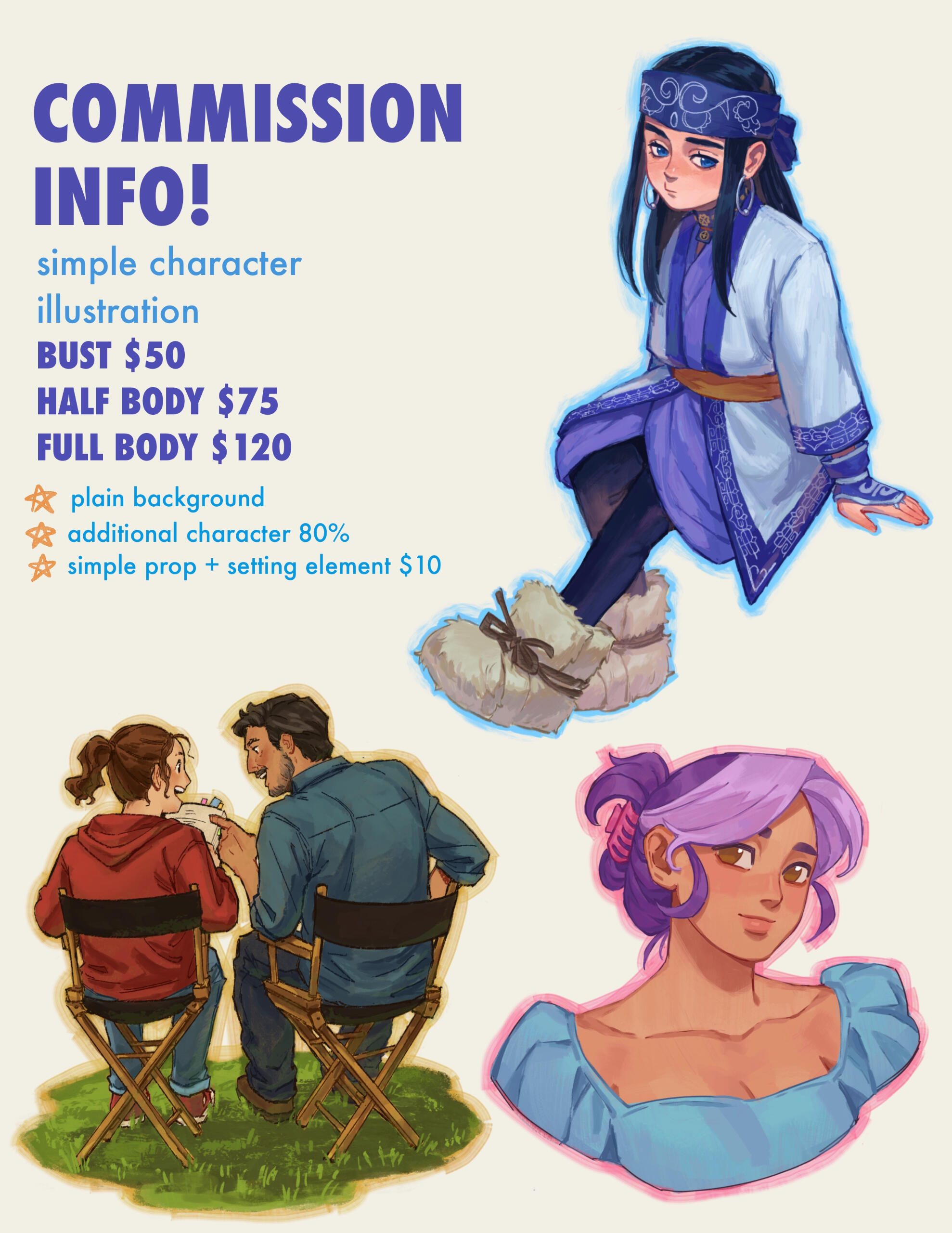 Upfront payment with Paypal or Venmo Bust - $50 Half body - $75 Full body - $120 Accept split payment for prices over $100